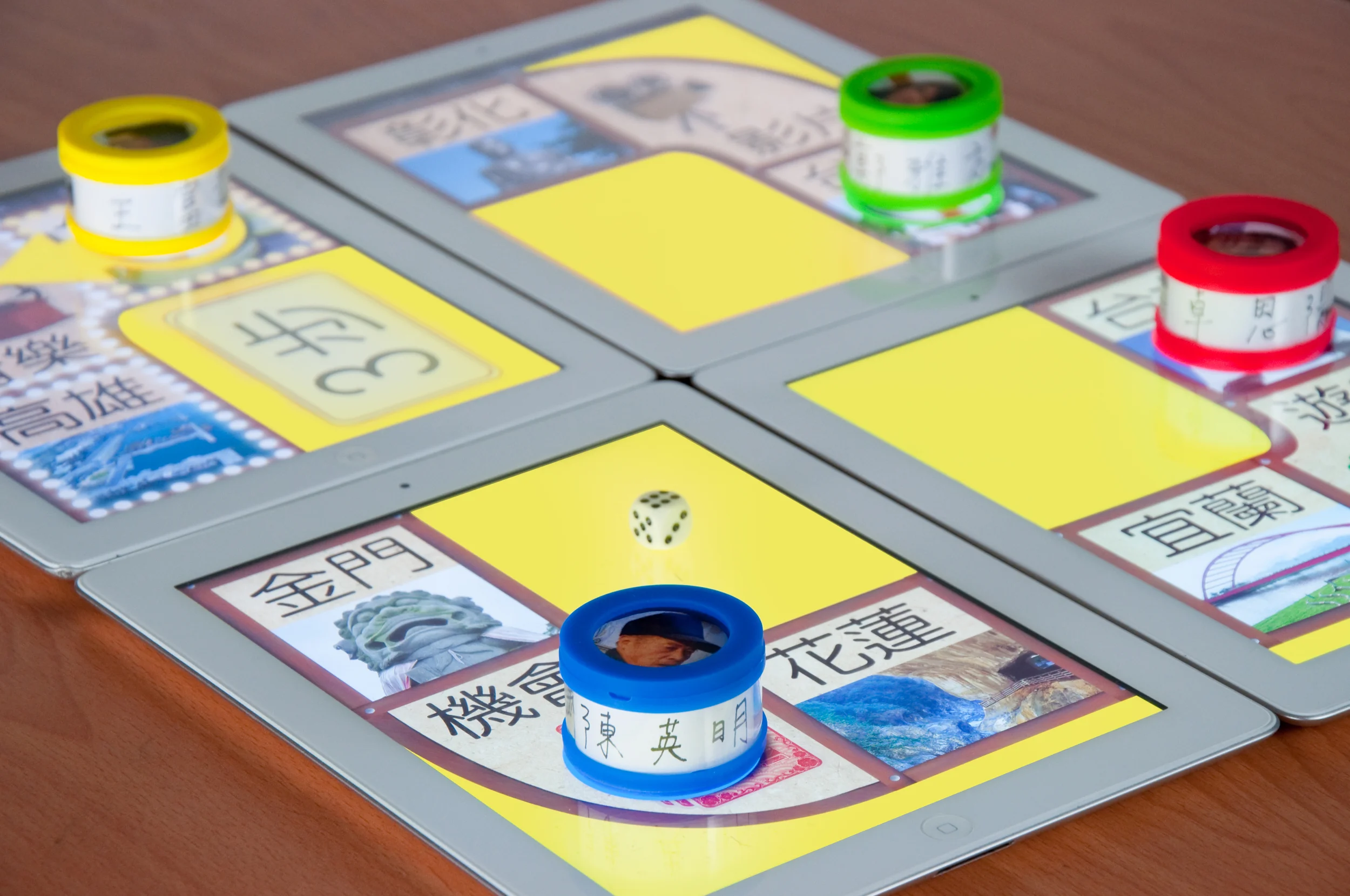 Based on the UXT findings, we employed UXD to revise the game and improve the user experience. We redesigned a new version of Memoir monopoly, which is played on only one computer. The all-in-one computer allowed us to invite up to five elderly and one caregiver to join the game. The big screen was suitable for enlarging photos to an ideal size. It was also more appropriate for group gaming activity with four iPads, with borders crossing right in the middle of the game map, creating an awkward look. A group activity atmosphere is more likely to be created when everybody sits together and looks at the one screen.