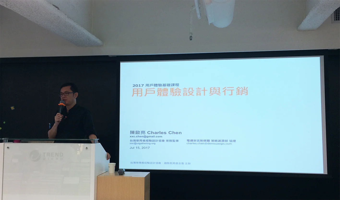 有些人會質疑「為什麼做UX要做行銷、廣告?」或是「行銷廣告公司為什麼要做UX?」今天的用戶體驗基礎課程邀請電通安吉斯媒體陳啟亮Charles,從行銷角度談設計者經驗設計。服務過的顧客涵蓋電信業、醫院、殯葬業、銀行、便利商店、觀光、媒體…等各行各業,Charles先打破學員們對行銷的迷思,再透過許多有趣的案例來啟發大家。